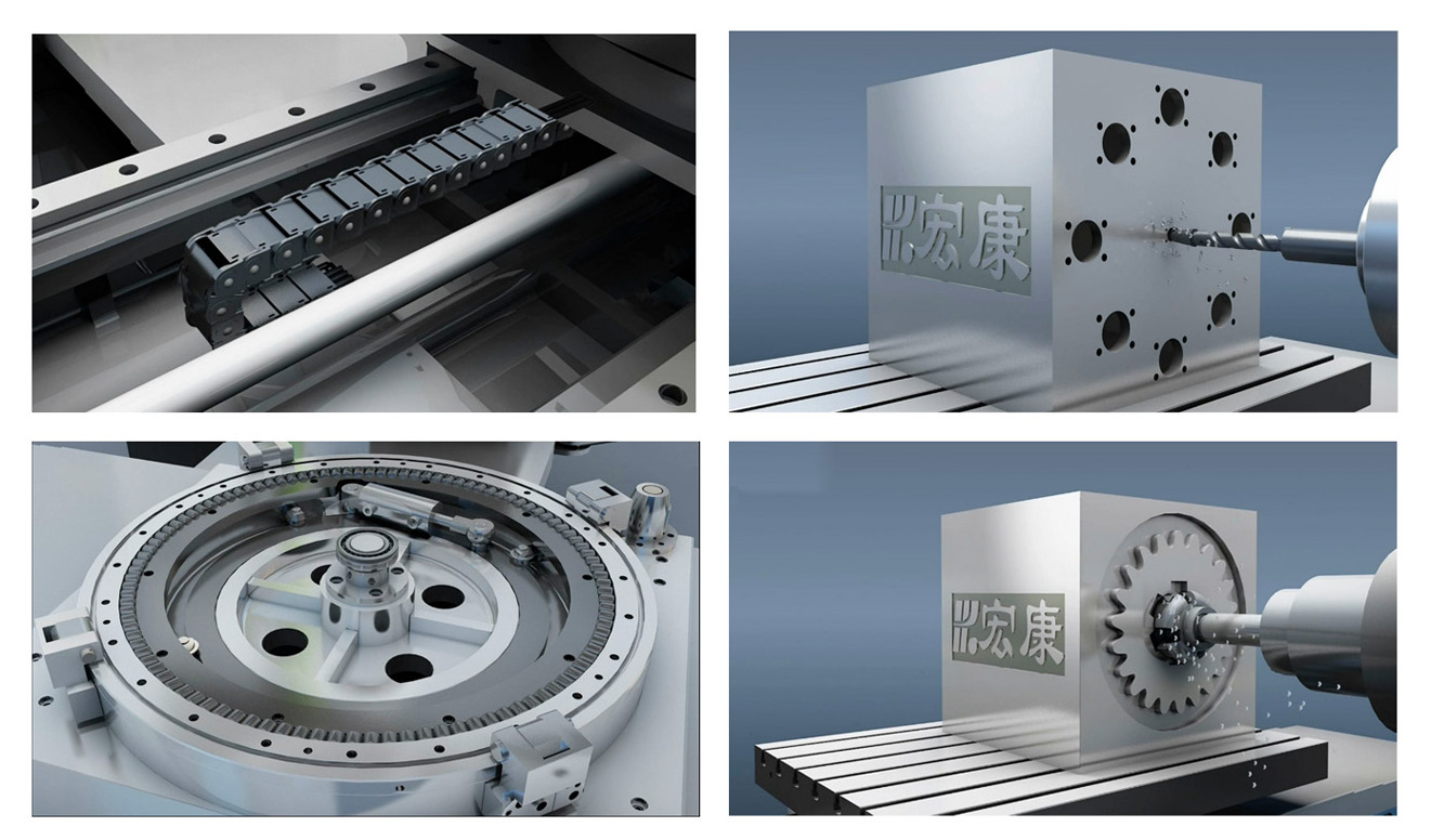 2、超短圓柱滾動回轉工作臺專利(專利號:ZL 2010 1 0281167.1)技術,使工作臺支撐能力和可靠性顯著提高。3、各坐標軸伺服進給裝置全部采用交流伺服電機驅動、應用預緊式滾珠絲杠、專用角接觸成組軸承支撐;4、上滑座、立柱采用直線導軌結構,精度高,便于安裝調試。5、主軸箱采用氮氣平衡系統,更加穩定、可靠、安全。6、拖鏈內置技術,有效保護管路運行系統、減少故障率,提高整體美觀度。